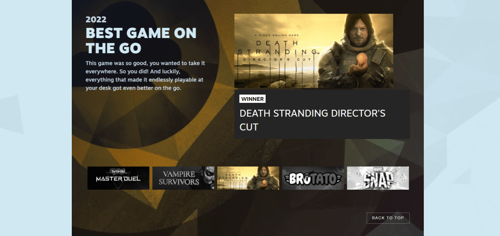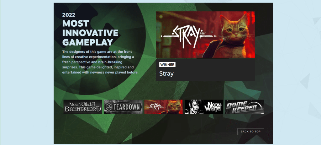 Now onto the last category for the Steam Awards of 2022. Truth be told, this one took me some time to figure out so bear with me here after you see the winner.