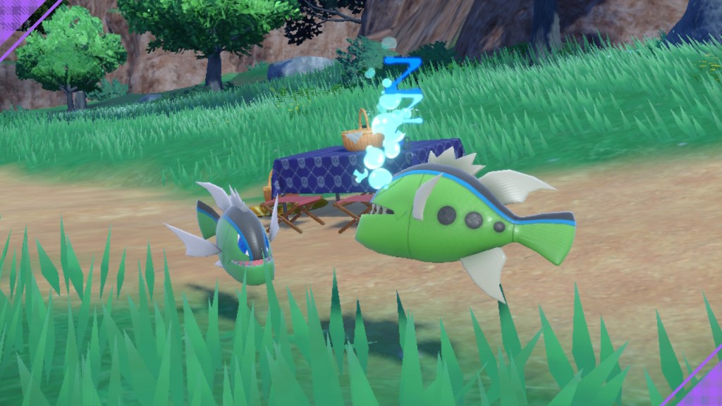 I decided to go for another grass type that I had been after for some time. Since I had already acquired a Toedscruel through sheer luck, I still needed a Toedscool to complete the line. So I used a ground boost sandwich to find myself a fast, white squid running through the forest. I took a couple of sandwiches as it always seems to these days. Eventually, I managed to spot it standing proud in the crowd. It did try to run away, but thankfully my legendary ride Pokémon is faster than it.